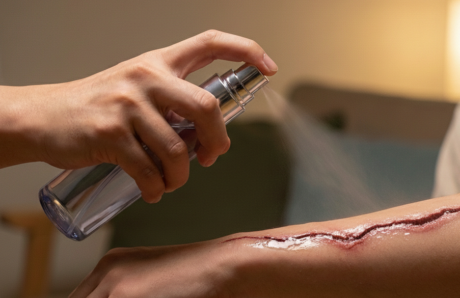 இந்த ஸ்ப்ரேயின் அடிப்படை தொழில்நுட்பம் ‘பாலிமர் மற்றும் உயிரி-ஒட்டும் தன்மை’ (Polymer & Bioadhesive Technology) ஆகும். இது காயத்தின் மீது பட்டவுடன் எப்படி செயல்படுகிறது என்பதை கீழே காண்போம்: